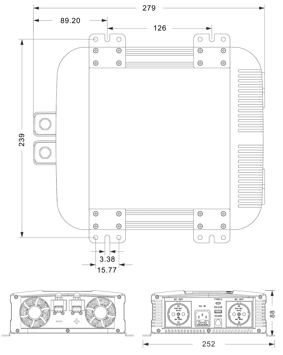 Mekaniska ritningar: (279x252x88mm mm)