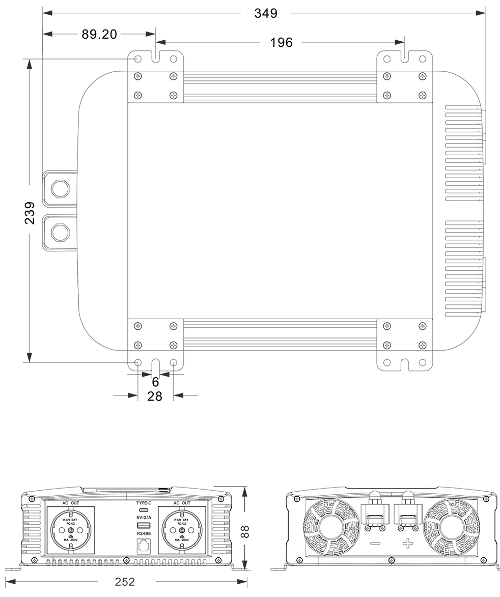 Mekaniska ritningar: (349x252x88mm)
