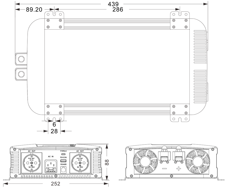 Mekaniska ritningar: (439x252*88mm)