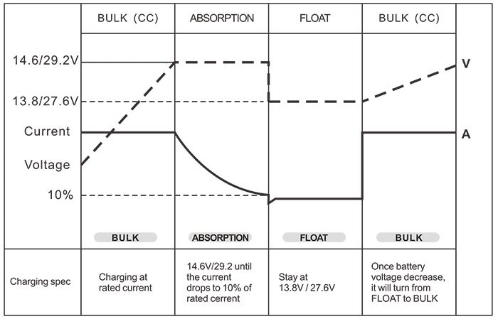 Batterikontroll (3-stegs batteriladdare) Bulk /Absorption /Flytande