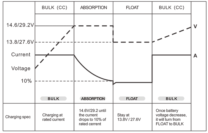 Batterikontroll (3-stegs batteriladdare) Bulk /Absorption /Flytande
