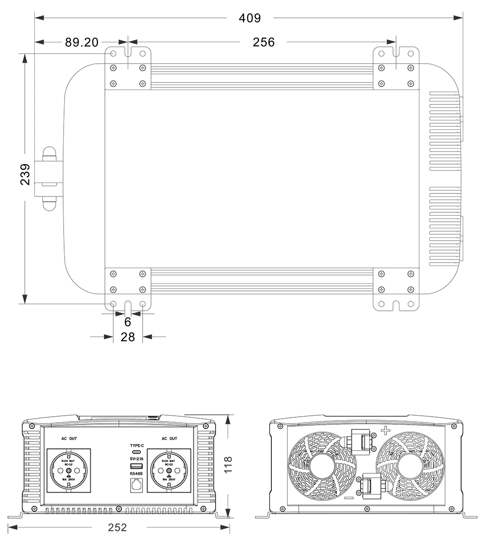 Mekaniska ritningar: (409x252x118mm)