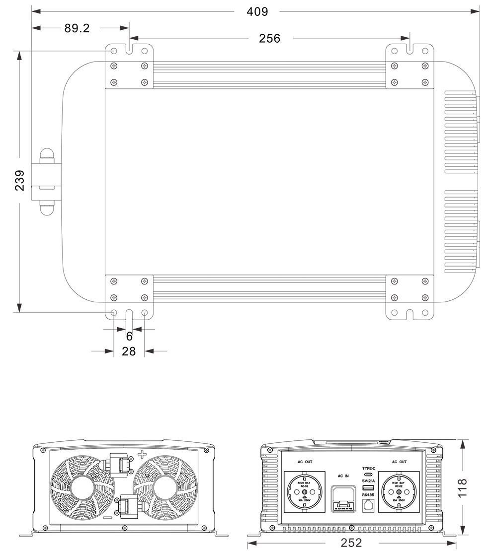 ●USB:5V /2,1A / Typ-C:Max 35W